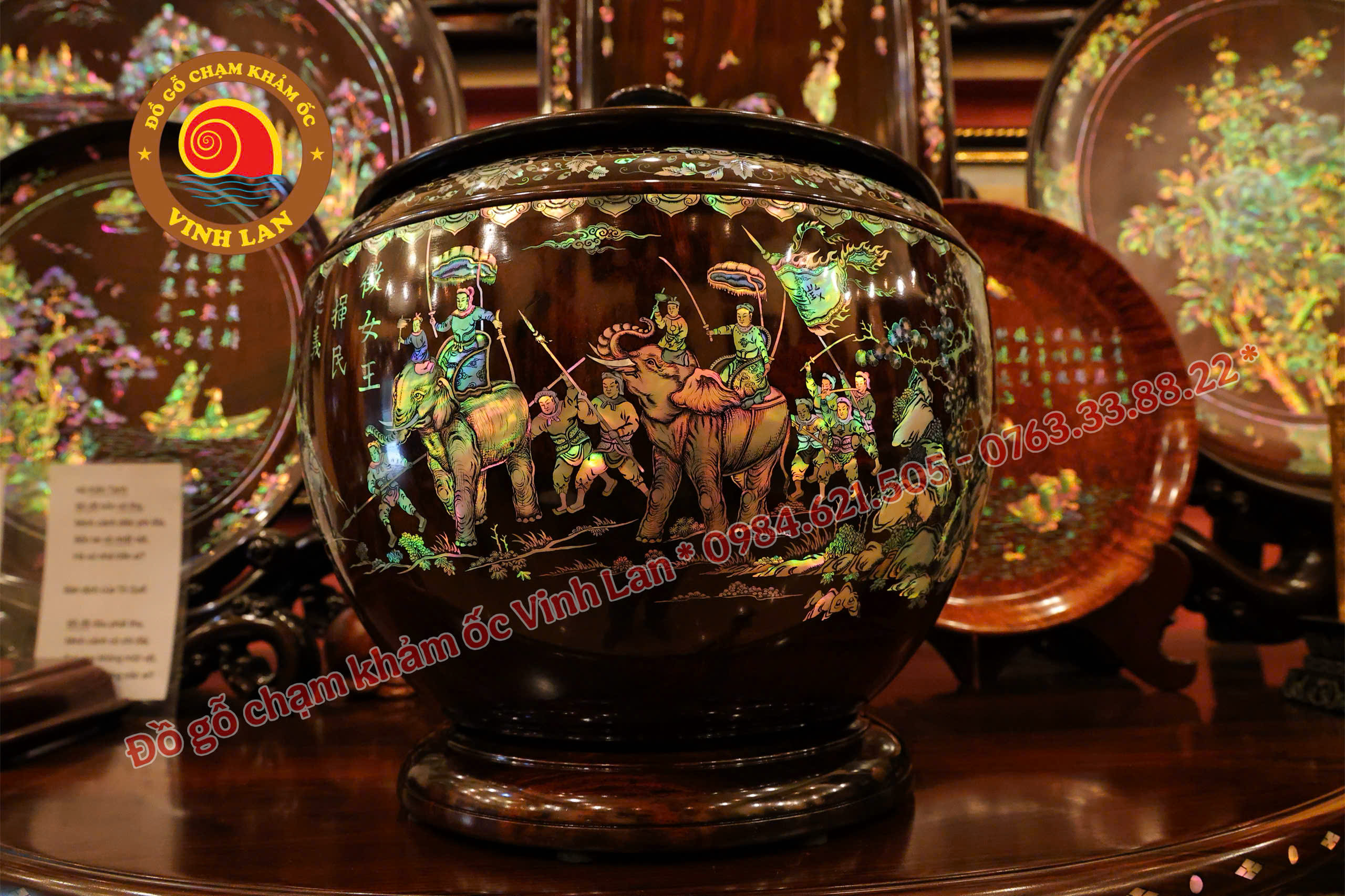 Chất liệu : gỗ Trắc ta khảm ốc vàng chanh xanh thiên lý