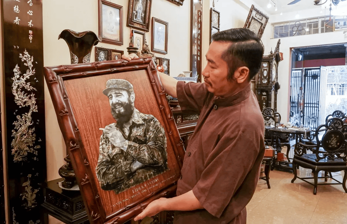 Ông chia sẻ: “Muốn cho bức tranh khảm được bền đẹp, những mảnh trai không bị bong tróc, thì gỗ phải được sấy thật khô, đảm bảo sự co rút hoàn toàn. Đây cũng là một trong những bí quyết làm nghề mà tôi học được, cách để sấy gỗ không bị nứt trước khi khảm”.